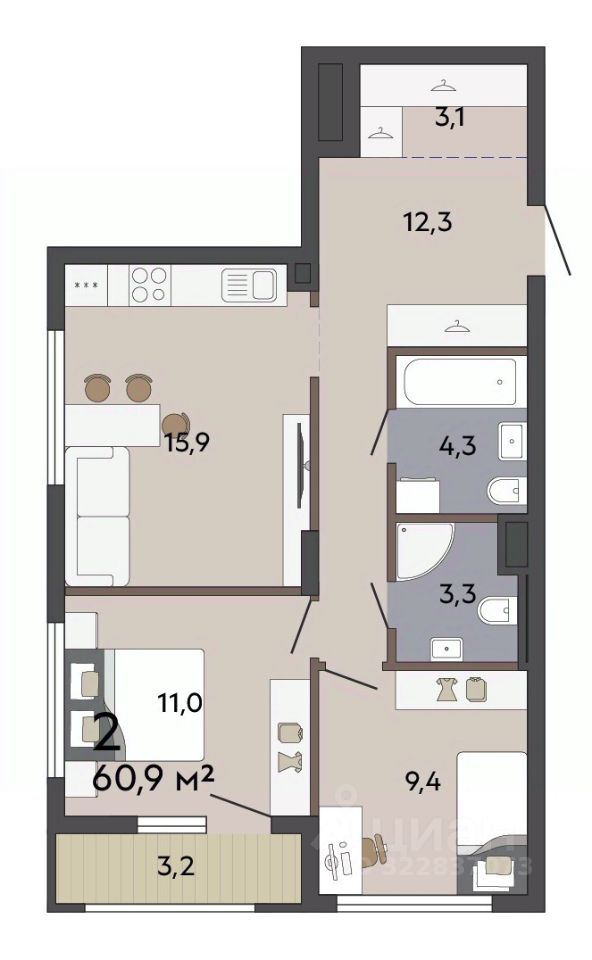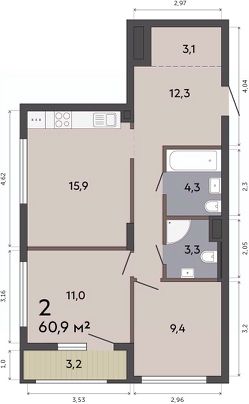 Продаётся 2-комнатная квартира в строящемся доме (Дом 6), срок сдачи: III-кв. 2027, общей площадью 60.9 кв.м., на 1 этаже. Расположение, транспортная доступность