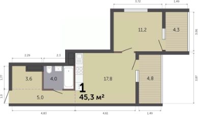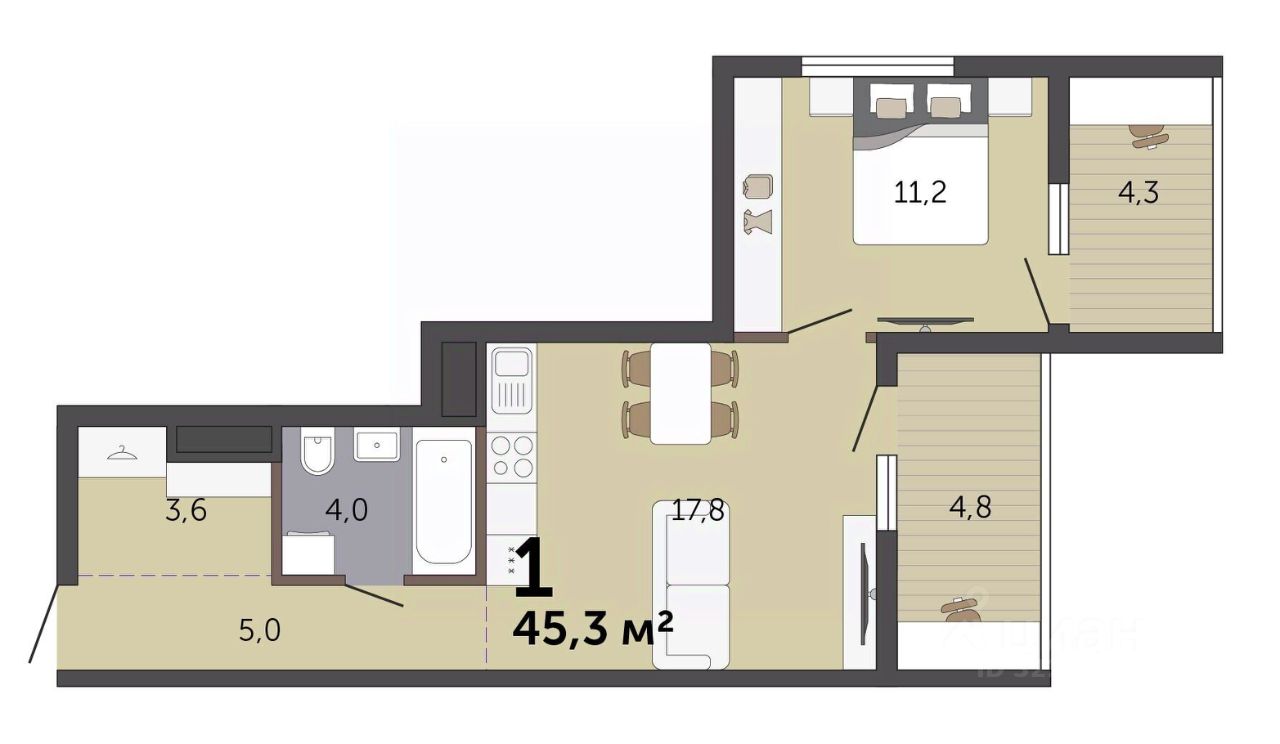 Продаётся 1-комнатная квартира в строящемся доме (Дом 6), срок сдачи: III-кв. 2027, общей площадью 45.3 кв.м., на 6 этаже. Расположение, транспортная доступность