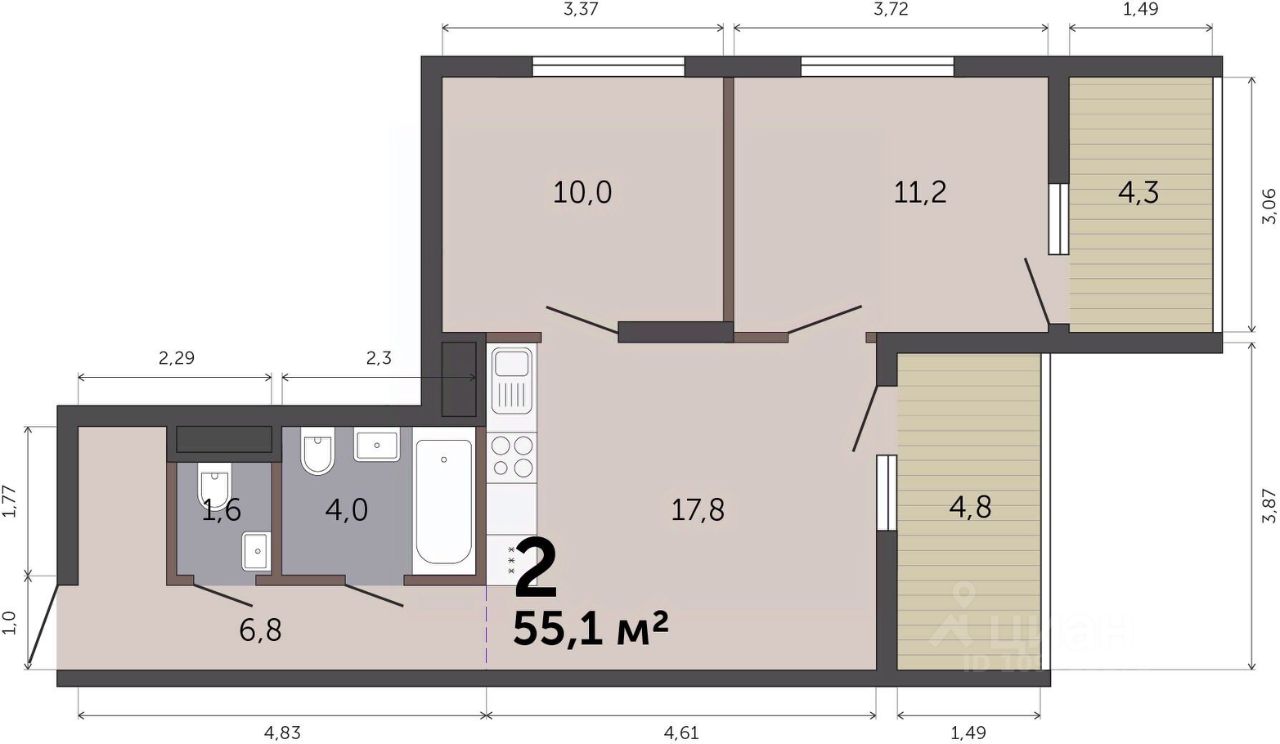 Продаётся 2-комнатная квартира в строящемся доме (Дом 6), срок сдачи: III-кв. 2027, общей площадью 55.1 кв.м., на 7 этаже. Расположение, транспортная доступность