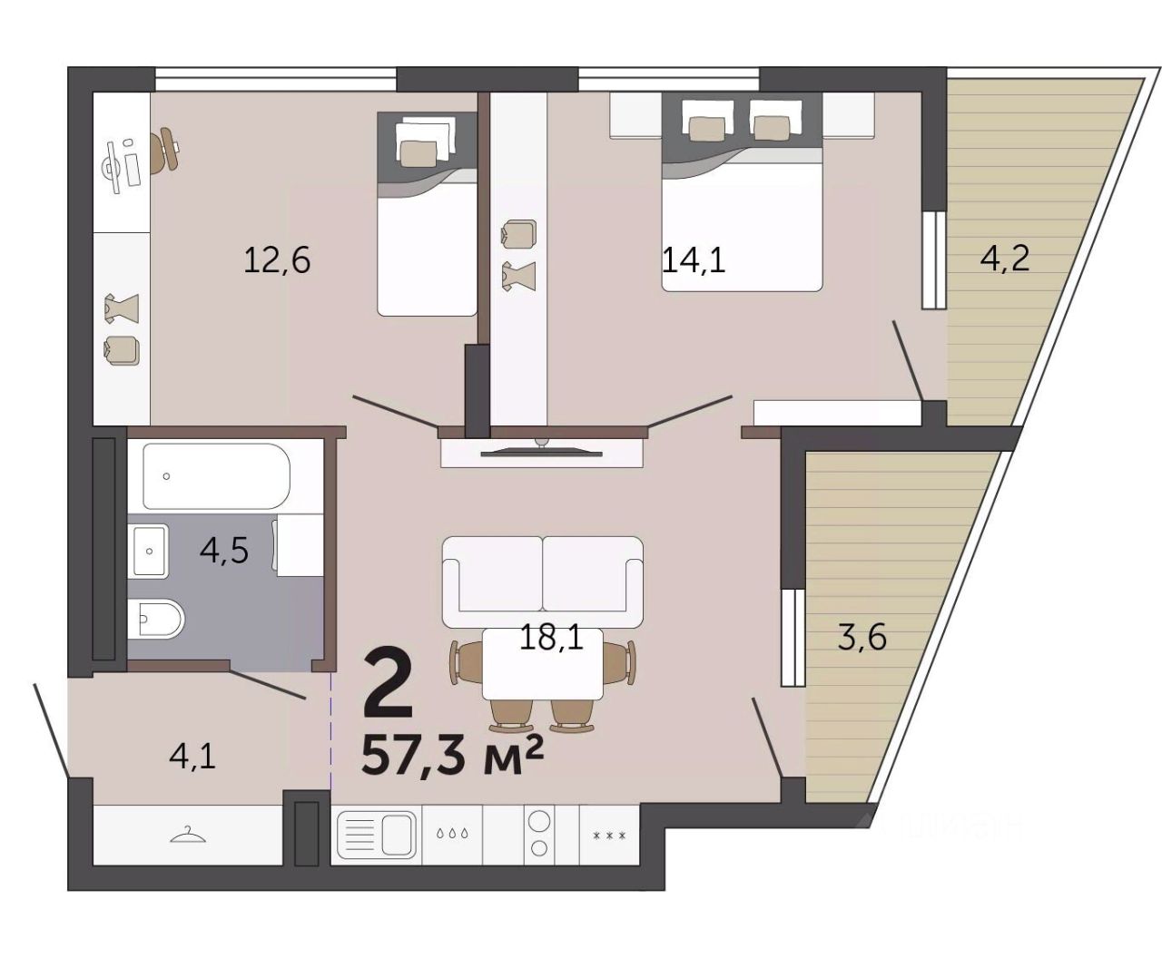 Продаётся 2-комнатная квартира в строящемся доме (Дом 6), срок сдачи: III-кв. 2027, общей площадью 57.3 кв.м., на 7 этаже. Расположение, транспортная доступность