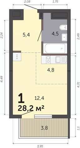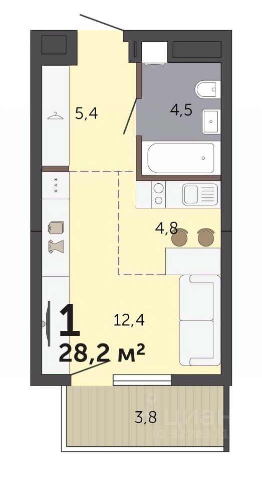 Продаётся студия в строящемся доме (Дом 6), срок сдачи: III-кв. 2027, общей площадью 28.2 кв.м., на 7 этаже. Расположение, транспортная доступность