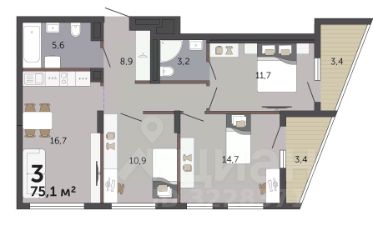 Продаётся 3-комнатная квартира в строящемся доме (Дом 6), срок сдачи: III-кв. 2027, общей площадью 75.1 кв.м., на 8 этаже. Расположение, транспортная доступность