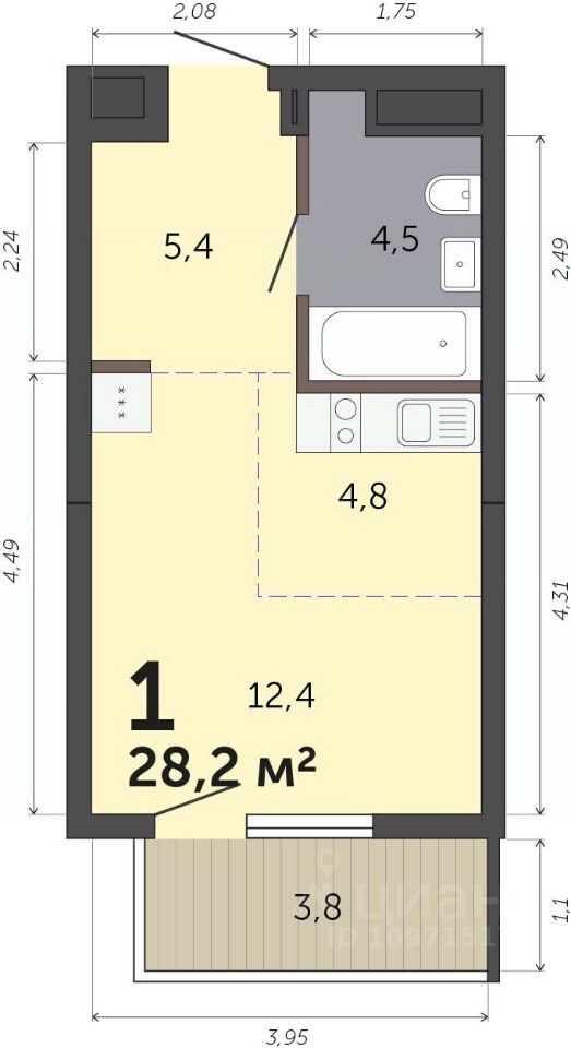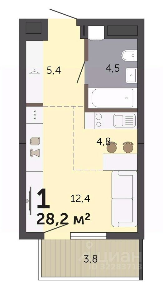 Продаётся студия в строящемся доме (Дом 6), срок сдачи: III-кв. 2027, общей площадью 28.2 кв.м., на 8 этаже. Расположение, транспортная доступность