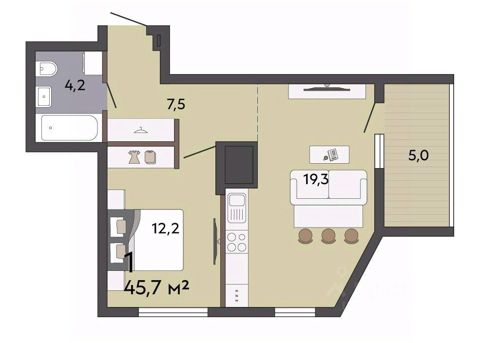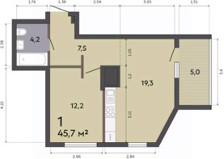Продаётся 1-комнатная квартира в строящемся доме (Дом 6), срок сдачи: III-кв. 2027, общей площадью 45.7 кв.м., на 12 этаже. Расположение, транспортная доступность