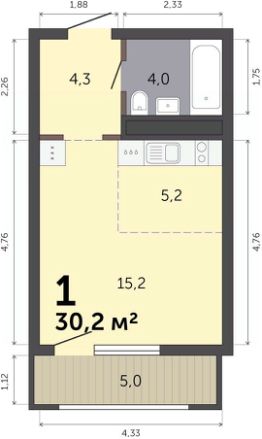 Продаётся студия в строящемся доме (Дом 6), срок сдачи: III-кв. 2027, общей площадью 30.2 кв.м., на 16 этаже. Расположение, транспортная доступность