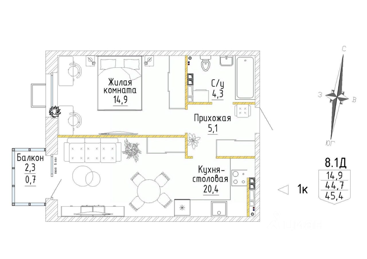 Продаётся 1-комнатная квартира в строящемся доме (Дом 9), срок сдачи: IV-кв. 2025, общей площадью 45.4 кв.м., на 8 этаже. ЗЕЛЕНАЯ ГОРКА - ПЕРСПЕКТИВНЫЙ ЖИЛОЙ РАЙОН В СЕВЕРНОЙ ЧАСТИ ЕКАТЕРИНБУРГА ВБЛИЗИ ПРИРОДЫ