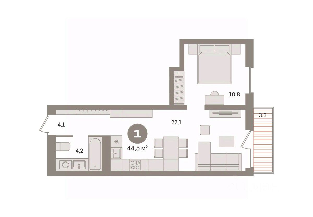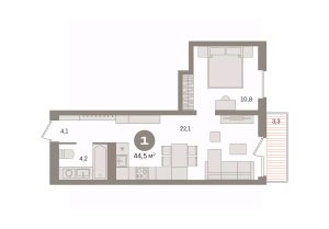 Квартира с кухней-гостиной и одной спальней в Северном квартале. Особенности планировки: предчистовая отделка, балкон.