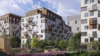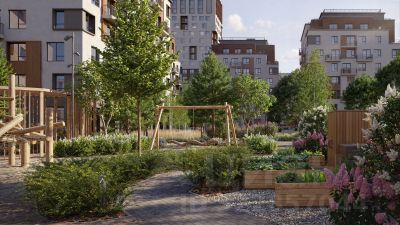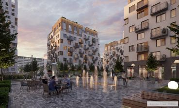 Оживлённое уличное движение останется за пределами квартала, а внутри создается собственная природная среда с зонами для вечерних прогулок, расслабленного отдыха, спорта и игр. Между домов проходит широкий пешеходный бульвар с разнообразным ландшафтом. Он объединяет общественные пространства между кварталами и переходит в площадь-сквер с фонтаном.
