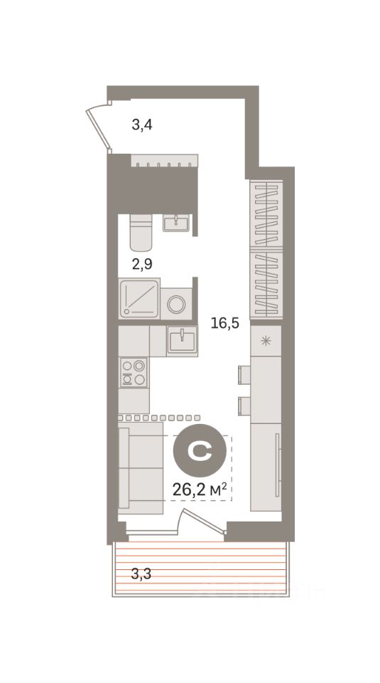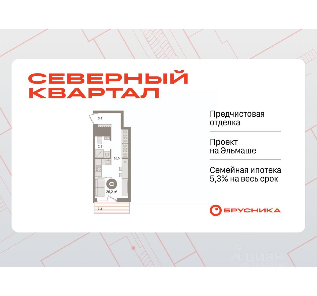 Студия в Северном квартале. Особенности планировки: вид во двор, предчистовая отделка, балкон.