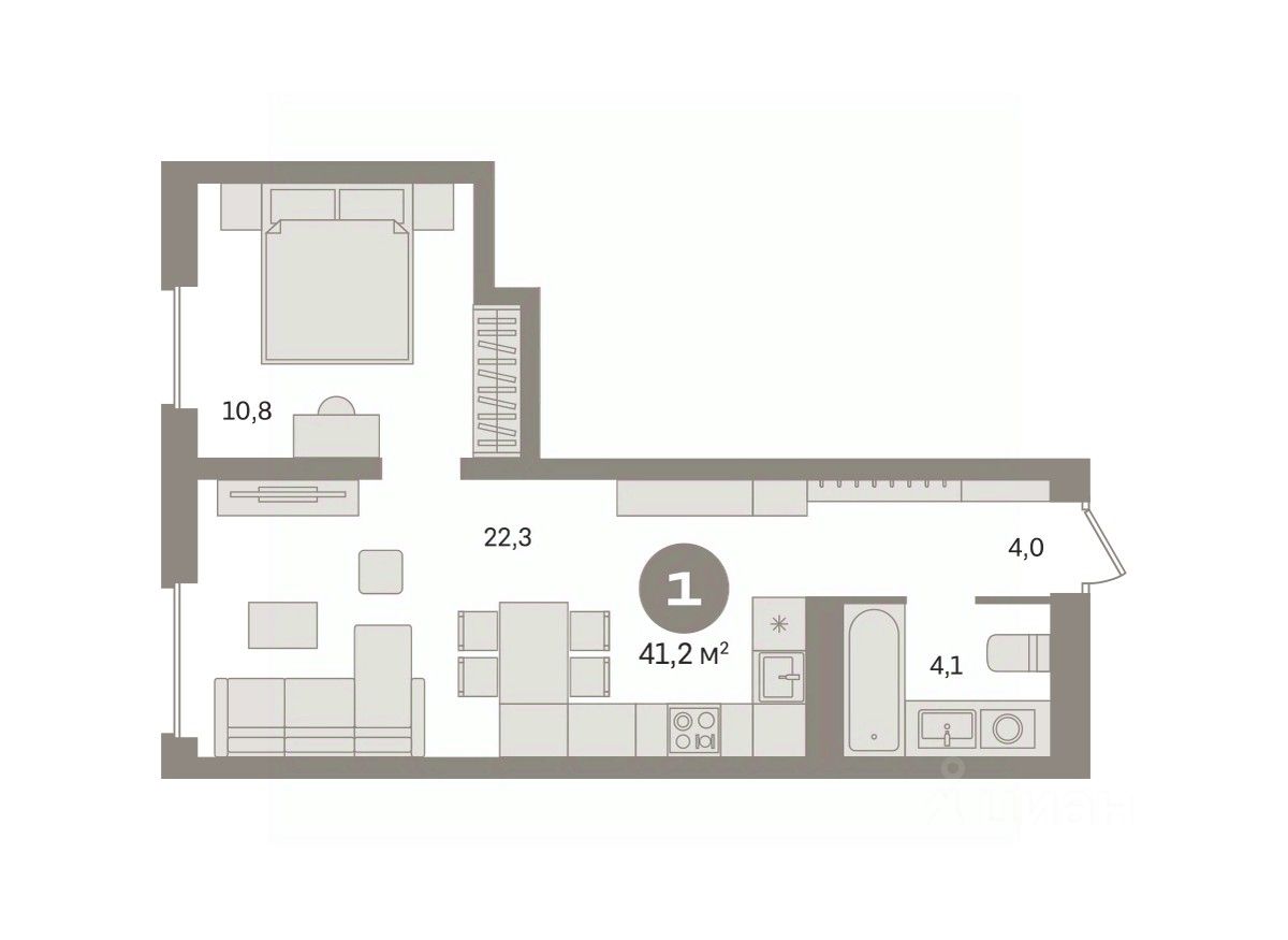 Квартира с кухней-гостиной и одной спальней в Северном квартале. Особенности планировки: вид во двор, предчистовая отделка.
