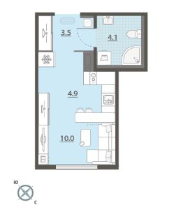 Жилая площадь 10.1 м2, кухня 5 м2, чистовая отделка. Раздельных санузлов - нет, балконов - нет, лоджий - нет.