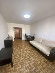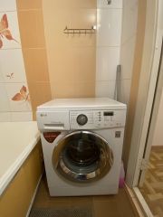 кухонный гарнитур, сделанный на заказ, барная стойка со стульями, диван — кровать, тумба с ящиками под ТВ Ikea, письменный стол Ikea с креслом, бытовая техника: ЖК-телевизор Samsung, холодильник LG (no frost), микроволновая печь Hansa, вытяжка Elikor, электрическая плита с духовым шкафом, электрический чайник, кухонный миксер, стиральная машина LG (загрузка на 6 кг), утюг, гладильная доска, кухонная утварь (посуда и прочее). С удовольствием отвечу на все интересующие Вас вопросы.
