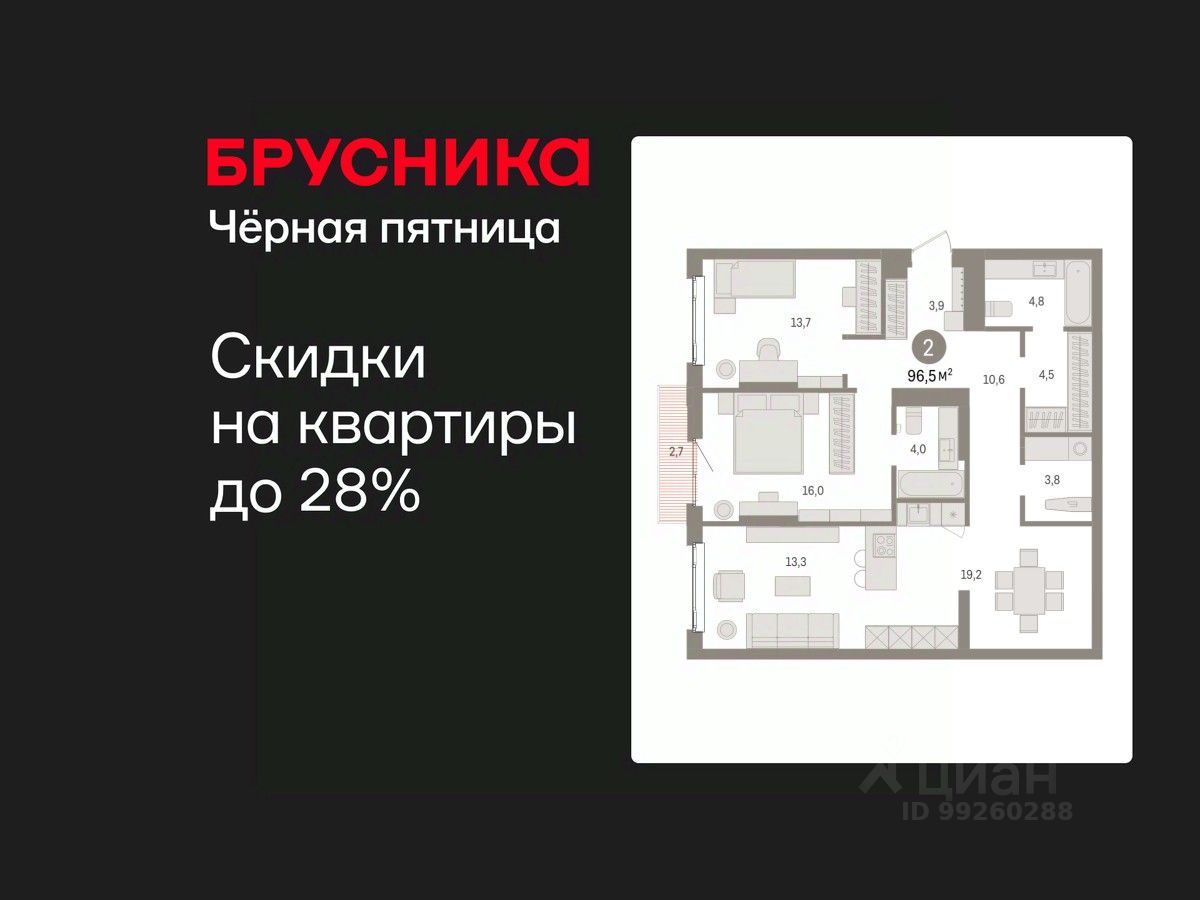 2-комн. квартира от застройщика с предчистовой отделкой в ЖК "Квартал Траектория" на 3 этаже. Общая площадь: 96.5 кв.м., жилая: 29.7 кв.м., площадь просторной кухни-столовой: 32.4 кв.м. Комнаты изолированные, все окна выходят на одну сторону. В квартире один балкон, два совмещенных санузла. Высота потолков 2.82 м.