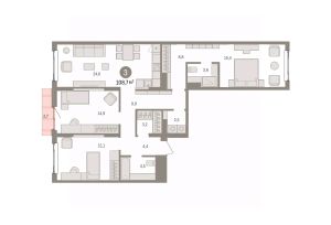 Продается 3-комн. квартира с предчистовой отделкой в ЖК "Квартал Траектория" на 3 этаже. Общая площадь: 108.7 кв.м. Высота потолков 2.82 м.