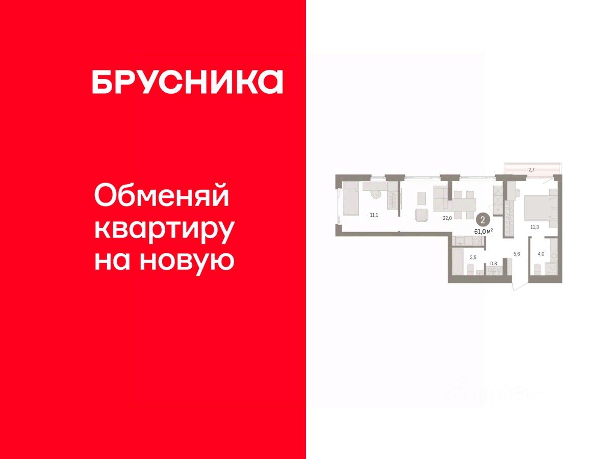 Двухкомнатная квартира от застройщика с предчистовой отделкой в ЖК "Квартал Траектория" на 3 этаже. Общая площадь: 61 кв.м., жилая: 22.4 кв.м., площадь просторной кухни-столовой: 22 кв.м. Квартира угловая, очень светлая, естественная вентиляция при открытии окон. В квартире один балкон, два совмещенных санузла. Высота потолков 2.82 м.