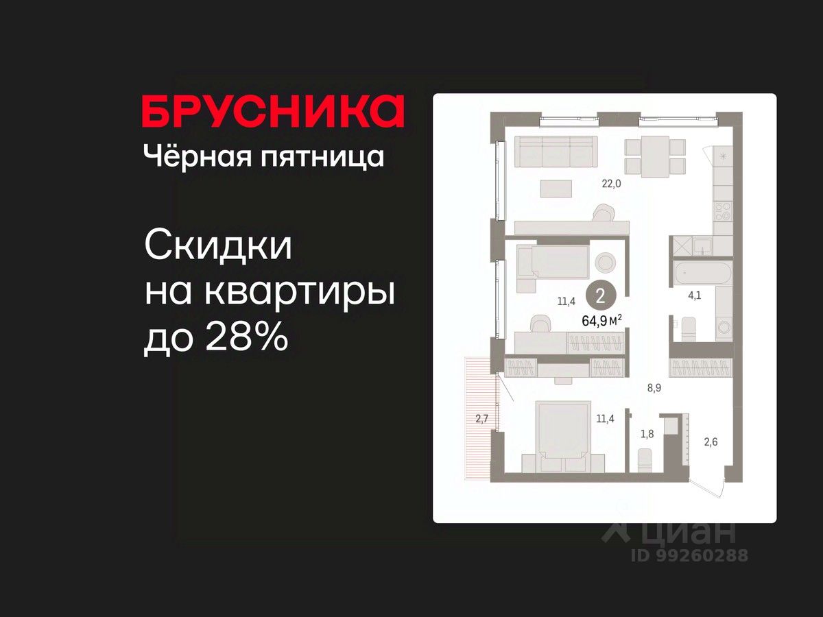 Продается двухкомнатная квартира от застройщика с предчистовой отделкой в ЖК "Квартал Траектория" на 9 этаже. Общая площадь: 64.9 кв.м., жилая: 22.3 кв.м., площадь просторной кухни-столовой: 22.2 кв.м. Квартира угловая, идеально подойдет любителям тишины и панорамных видов. В квартире два балкона, два совмещенных санузла. Высота потолков 2.82 м.
