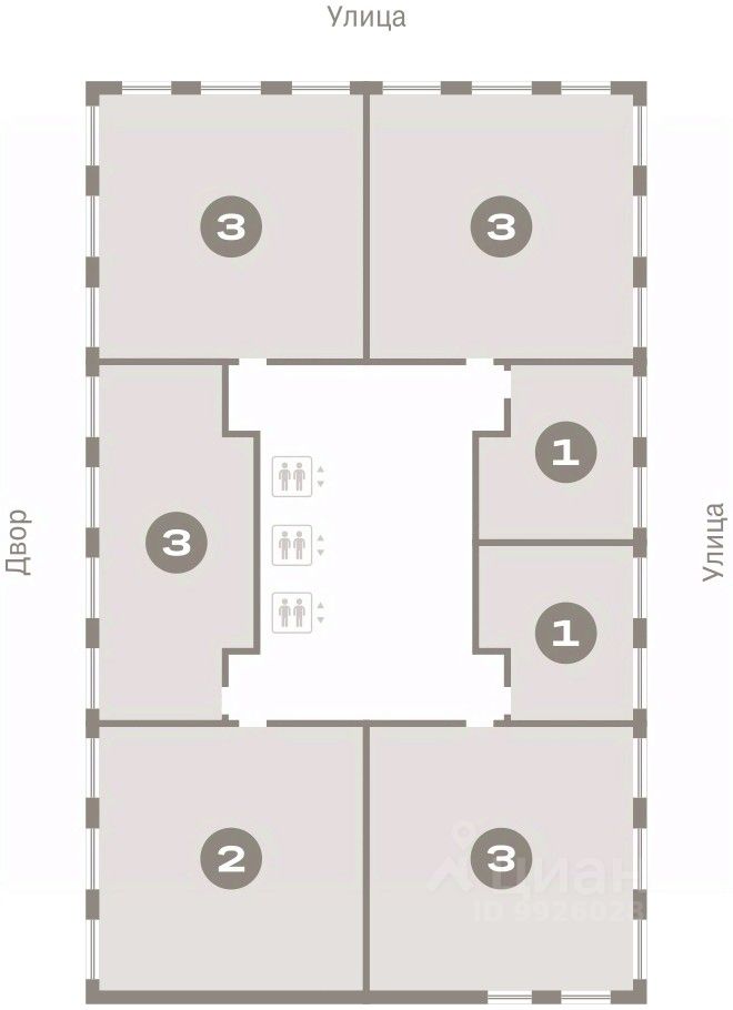 Квартира с кухней-гостиной и двумя спальнями в квартале "Траектория". Особенности планировки: вид во двор, гардеробная, мастер-спальня, постирочная, потолки 3 м и выше, предчистовая отделка, разнесённые спальни.