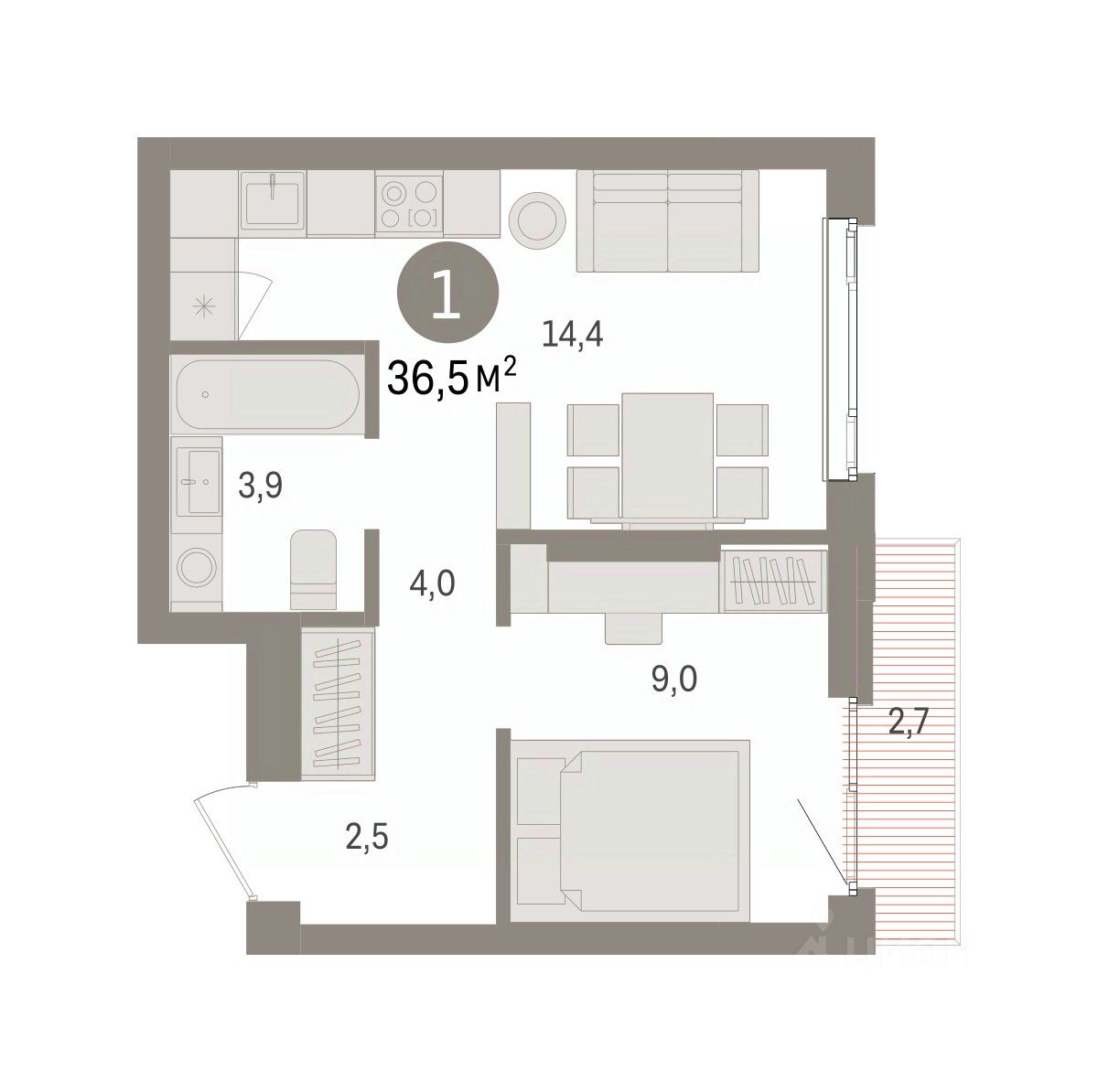 Продается 1-комн. квартира с предчистовой отделкой в ЖК "Квартал Траектория" на 6 этаже. Общая площадь: 36.5 кв.м., жилая: 9 кв.м., площадь просторной кухни-столовой: 14.4 кв.м. Все окна выходят на одну сторону. В квартире один балкон, один совмещенный санузел. Высота потолков 2.82 м.