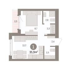 Просторная однокомнатная квартира с предчистовой отделкой в ЖК "Квартал Траектория" на 6 этаже. Общая площадь: 35.9 кв.м., жилая: 8.7 кв.м., площадь просторной кухни-столовой: 13.7 кв.м. Все окна выходят на одну сторону. В квартире одна лоджия, один совмещенный и один раздельный санузел. Высота потолков 2.82 м.