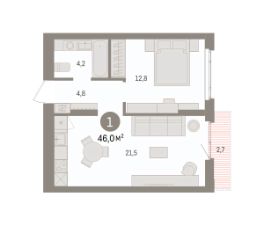 Продается 1-комн. квартира от застройщика с предчистовой отделкой в ЖК "Квартал Траектория" на 3 этаже. Общая площадь: 46 кв.м., жилая: 12.8 кв.м., площадь просторной кухни-столовой: 21.5 кв.м. Все окна выходят на одну сторону. В квартире один балкон, один совмещенный санузел. Высота потолков 2.82 м.