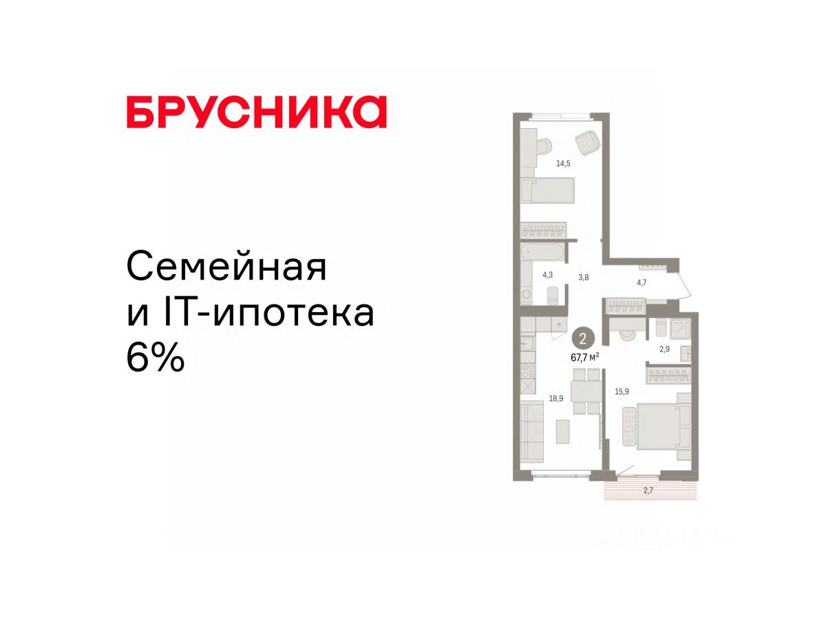 Просторная 2-комн. квартира с предчистовой отделкой в ЖК "Квартал Траектория" на 2 этаже. Общая площадь: 67.7 кв.м., жилая: 30.4 кв.м., площадь просторной кухни-столовой: 18.9 кв.м. Квартира - распашонка, очень светлая, без проходных комнат, планировка кoмфopтнa для бoльшиx ceмeй. В квартире один балкон, два совмещенных санузла. Высота потолков 2.82 м.