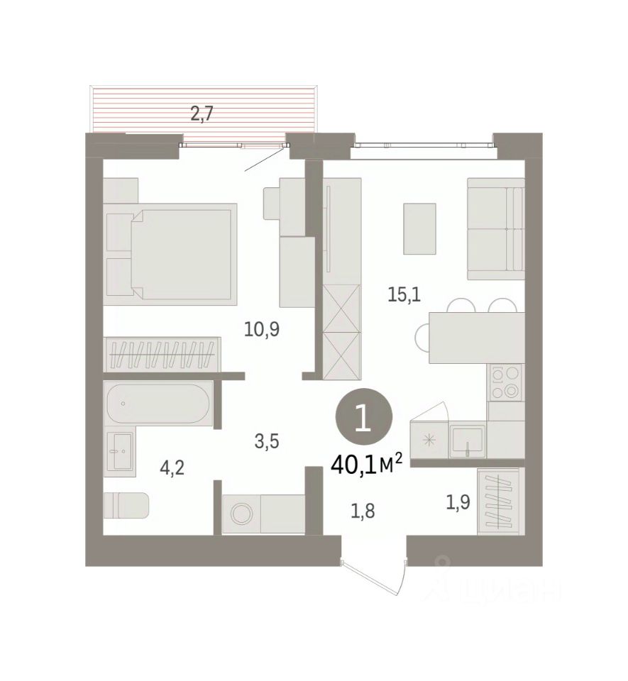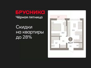Однокомнатная квартира с предчистовой отделкой в ЖК "Квартал Траектория" на 3 этаже. Общая площадь: 40.1 кв.м., жилая: 10.9 кв.м., площадь просторной кухни-столовой: 15.1 кв.м. Все окна выходят на одну сторону. В квартире один балкон, один совмещенный санузел. Высота потолков 2.82 м.