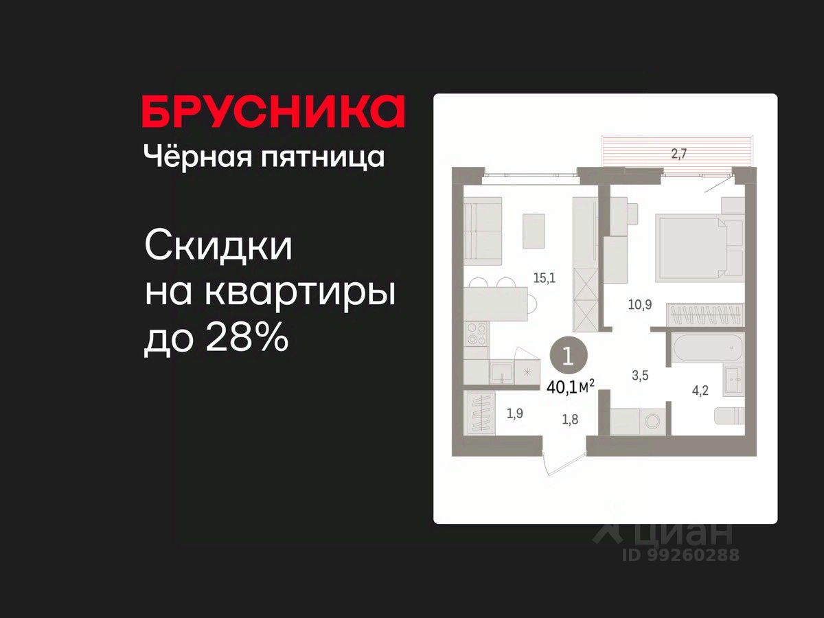 Однокомнатная квартира с предчистовой отделкой в ЖК "Квартал Траектория" на 3 этаже. Общая площадь: 40.1 кв.м., жилая: 10.9 кв.м., площадь просторной кухни-столовой: 15.1 кв.м. Все окна выходят на одну сторону. В квартире один балкон, один совмещенный санузел. Высота потолков 2.82 м.