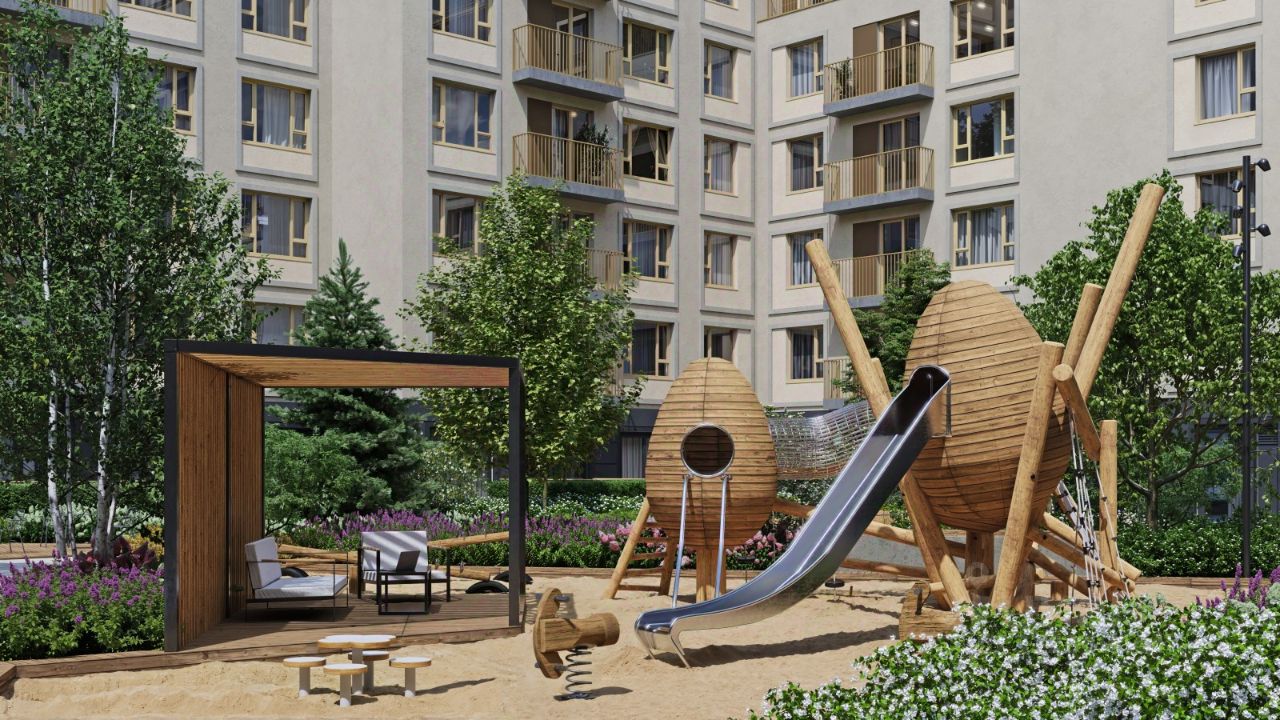Каждый двор в квартале "Траектория" — продолжение квартиры, только под открытым небом. Здесь можно прогуляться босиком по траве, устроить утреннюю йогу, почитать книгу в гамаке или отправить детей поиграть, не переживая за их безопасность.