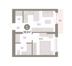Однокомнатная квартира от застройщика с предчистовой отделкой в ЖК "Квартал Траектория" на 5 этаже. Общая площадь: 39.9 кв.м., жилая: 10.9 кв.м., площадь просторной кухни-столовой: 15.1 кв.м. Все окна выходят на одну сторону. В квартире один балкон, один совмещенный санузел. Высота потолков 2.82 м.