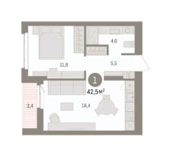 Продается 1-комн. квартира с предчистовой отделкой в ЖК "Квартал Траектория" на 6 этаже. Общая площадь: 42.5 кв.м., жилая: 11.3 кв.м., площадь просторной кухни-столовой: 17.6 кв.м. Все окна выходят на одну сторону. В квартире одна лоджия, один совмещенный санузел. Высота потолков 2.82 м.