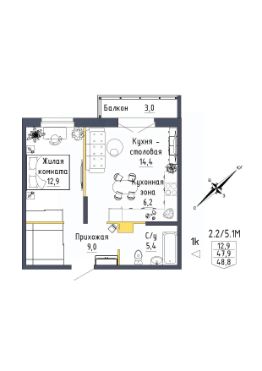 Продаётся 1-комнатная квартира в строящемся доме (Дом 12), срок сдачи: IV-кв. 2025, общей площадью 48.8 кв.м., на 3 этаже. ЗЕЛЕНАЯ ГОРКА - ПЕРСПЕКТИВНЫЙ ЖИЛОЙ РАЙОН В СЕВЕРНОЙ ЧАСТИ ЕКАТЕРИНБУРГА ВБЛИЗИ ПРИРОДЫ