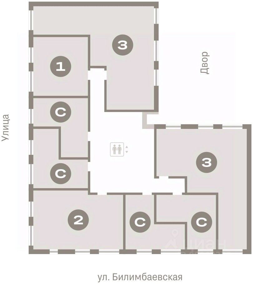 Квартира с кухней-гостиной и тремя спальнями в квартале "Траектория". Особенности планировки: окна на две стороны, стартовая цена, вид во двор, разнесённые спальни, предчистовая отделка, мастер-спальня, балкон.