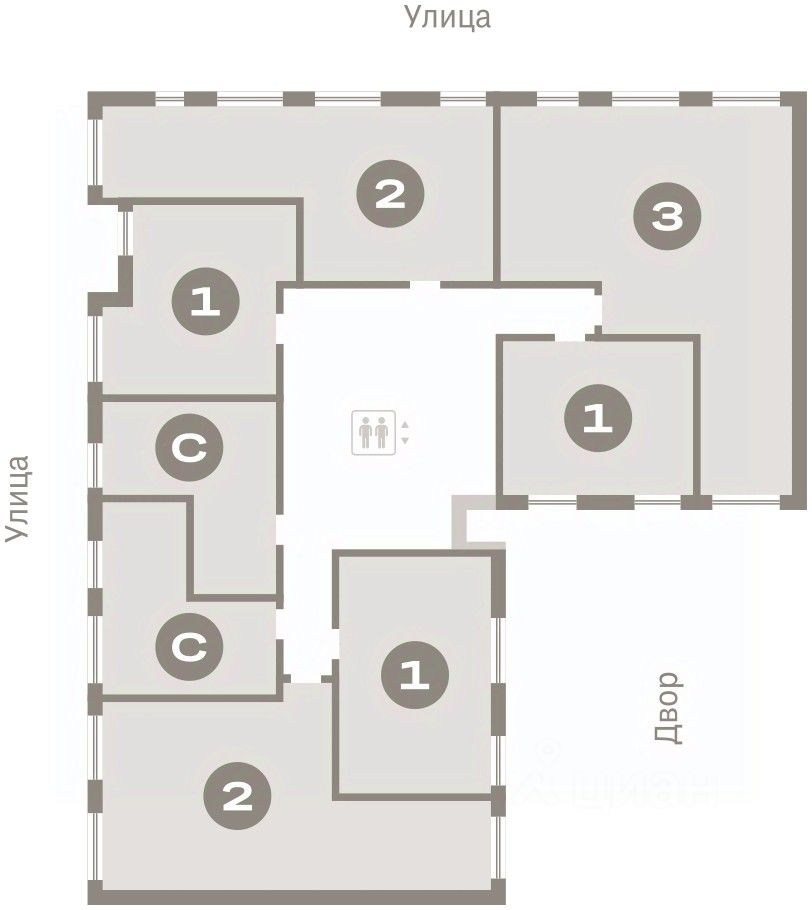 Квартира с кухней-гостиной и тремя спальнями в квартале "Траектория". Особенности планировки: окна на две стороны, гардеробная, стартовая цена, вид во двор, разнесённые спальни, предчистовая отделка, мастер-спальня, балкон.