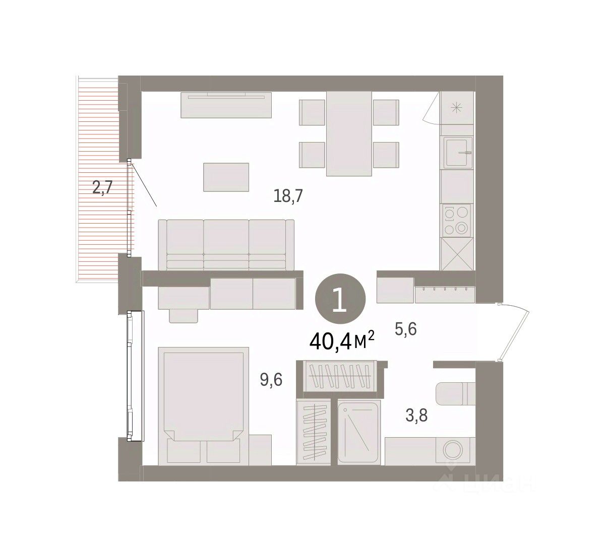 Просторная 1-комн. квартира с предчистовой отделкой в ЖК "Квартал Траектория" на 4 этаже. Общая площадь: 40.4 кв.м., жилая: 9.6 кв.м., площадь просторной кухни-столовой: 18.7 кв.м. Все окна выходят на одну сторону. В квартире один балкон, один совмещенный санузел. Высота потолков 2.82 м.