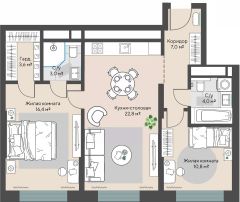 Продаётся 2-комнатная квартира в строящемся доме (Дом 1 этап 1.1), срок сдачи: I-кв. 2028, общей площадью 67.6 кв.м., на 26 этаже.