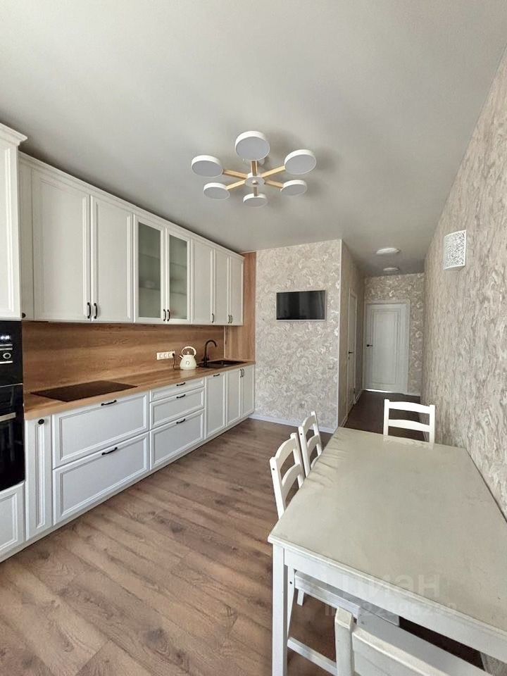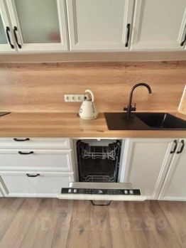 Новым хозяевам остаётся встроенная мебель (кухонный гарнитур, встроенные шкафы), встроенная техника (холодильник, посудомоечная машина, индукционная плита, встроенная микроволновка и духовой шкаф).