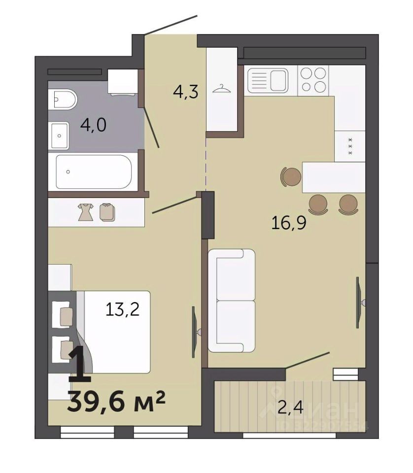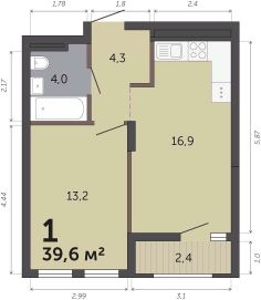Продаётся 1-комнатная квартира в строящемся доме (Дом 6), срок сдачи: III-кв. 2027, общей площадью 39.6 кв.м., на 9 этаже. Расположение, транспортная доступность