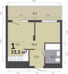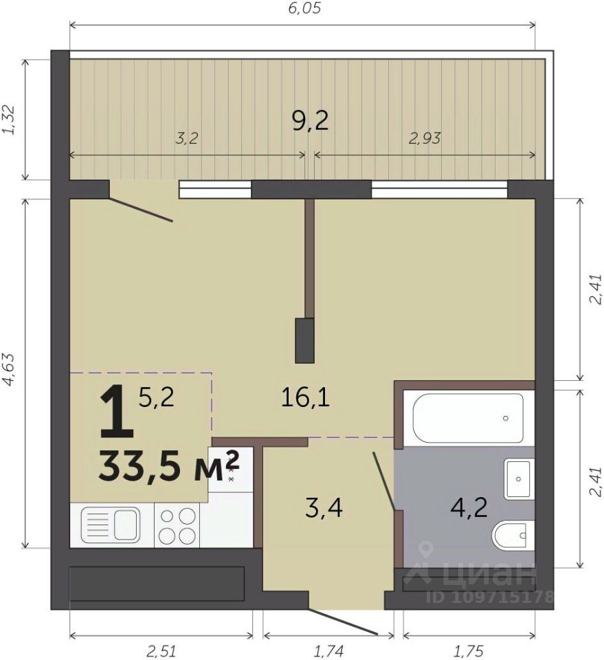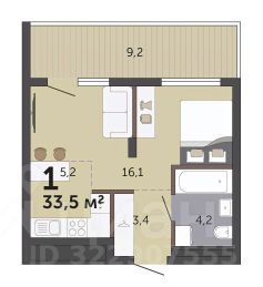 Продаётся студия в строящемся доме (Дом 6), срок сдачи: III-кв. 2027, общей площадью 33.5 кв.м., на 9 этаже. Расположение, транспортная доступность