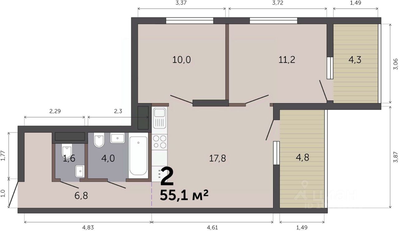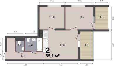 Продаётся 2-комнатная квартира в строящемся доме (Дом 6), срок сдачи: III-кв. 2027, общей площадью 55.1 кв.м., на 12 этаже. Расположение, транспортная доступность