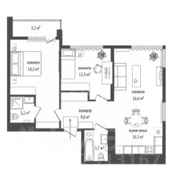 Жилая комната 12м и вторая комната 18м мастер-спальня со своим санузлом и выходом на лоджию.