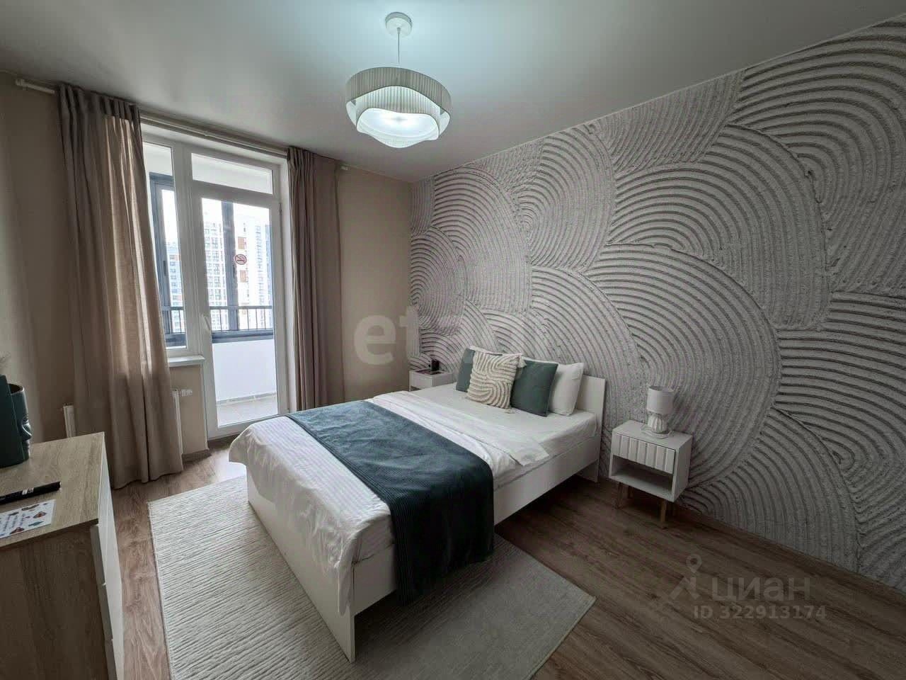 Спальня правильной формы с выходом на балкон.