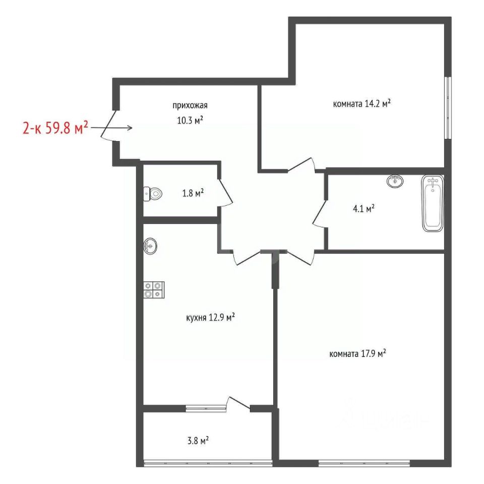 Квартира расположена в ЖК River Park, площадью 59,8 кв. м.