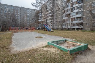 - дом вдали от дороги, окна выходят на тихий зеленый двор с просторной детской площадкой;