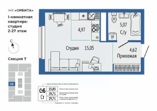 Продаётся 1-комнатная квартира в строящемся доме (Секции 4,5,7), срок сдачи: I-кв. 2027, общей площадью 29.72 кв.м., на 7 этаже. Новый жилой комплекс "Квартал на Титова" от застройщика "Правобережный" расположен по адресу: г. Екатеринбург, улица Титова.