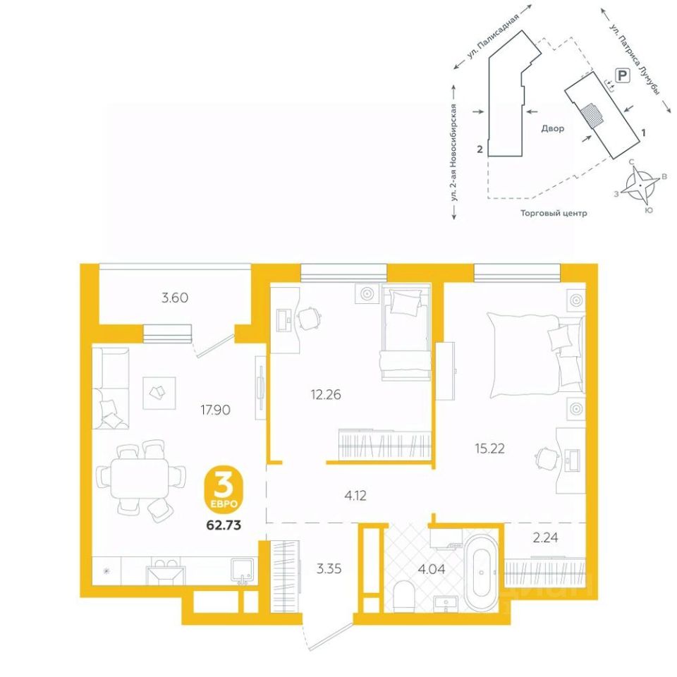 Квартира находится в ЖК "Бодровский" от федерального застройщика "Паритет Девелопмент". Это жилой комплекс комфорт-класса с современной архитектурой, расположенный в Екатеринбурге в районе улиц Патриса Лумумбы и 2-й Новосибирской.