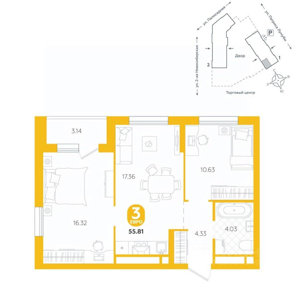 Квартира находится в ЖК "Бодровский" от федерального застройщика "Паритет Девелопмент". Это жилой комплекс комфорт-класса с современной архитектурой, расположенный в Екатеринбурге в районе улиц Патриса Лумумбы и 2-й Новосибирской.