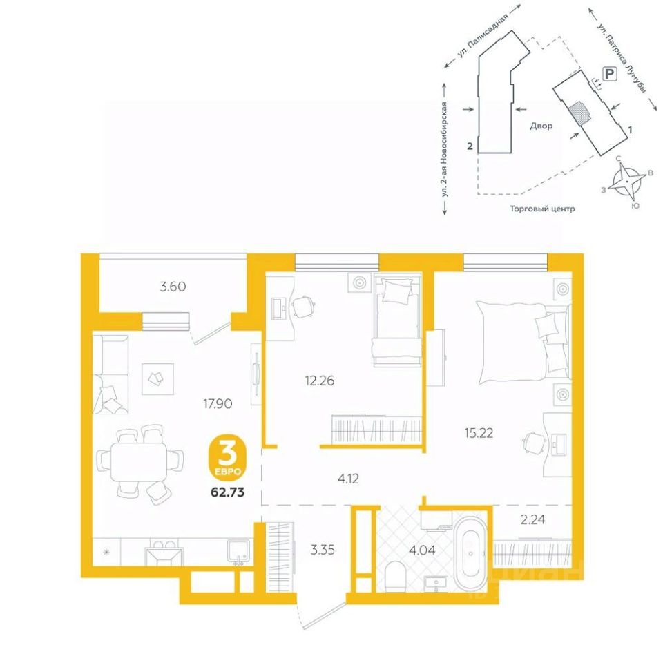 Квартира находится в ЖК "Бодровский" от федерального застройщика "Паритет Девелопмент". Это жилой комплекс комфорт-класса с современной архитектурой, расположенный в Екатеринбурге в районе улиц Патриса Лумумбы и 2-й Новосибирской.