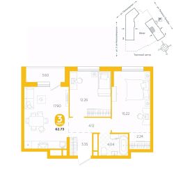 площадь квартиры - 62,73 кв.м