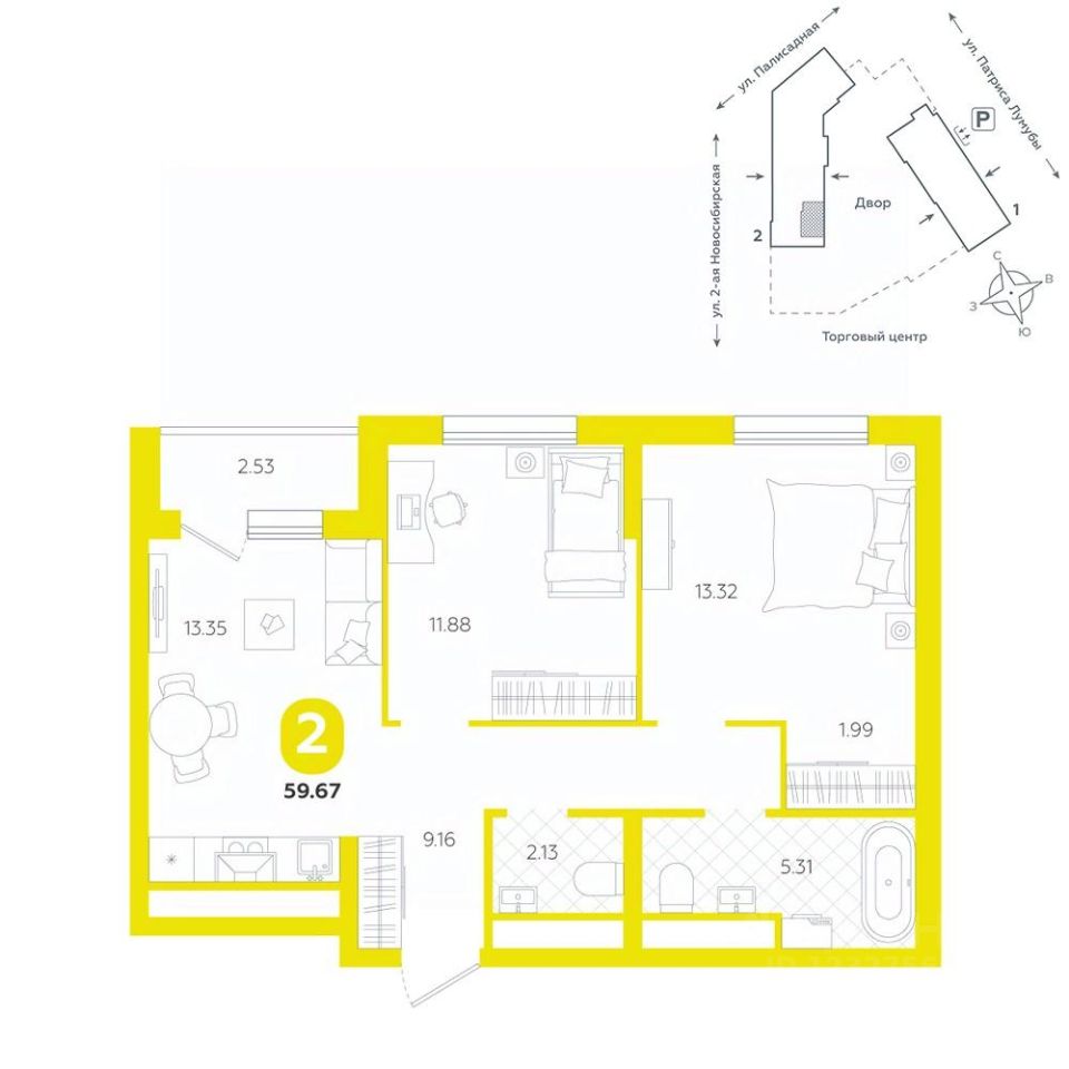Квартира находится в ЖК "Бодровский" от федерального застройщика "Паритет Девелопмент". Это жилой комплекс комфорт-класса с современной архитектурой, расположенный в Екатеринбурге в районе улиц Патриса Лумумбы и 2-й Новосибирской.