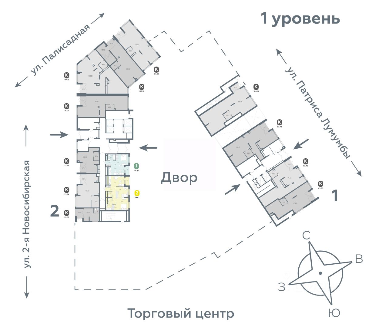 Квартал состоит из двух секций переменной этажности (от 14 до 24 этажей) и подземного паркинга с кладовыми, к которым можно будет спуститься на лифте. На первых этажах предусмотрены коммерческие помещения: жители смогут сделать маникюр, воспользоваться услугами ателье, выпить кофе с круассаном, не покидая своего района. Ввод в эксплуатацию в III кв. 2027 года.